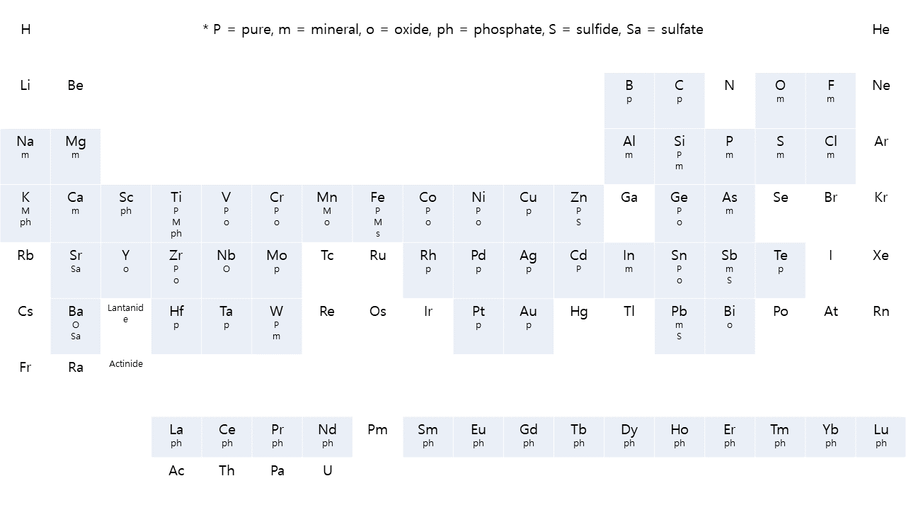 상기 테이블의 표준물질이 현재 구비되어 있사오니 여타의 원소를 분석하시려면 실험자께서 가져오셔야 합니다.